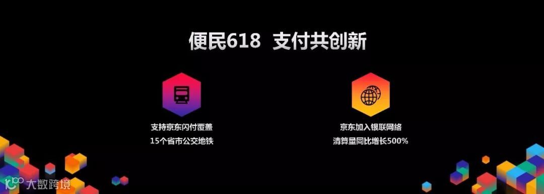 京东支付基于银联“云闪付”合作的京东闪付,除了支持近1000万云闪付POS机使用外,还覆盖了15个省市公交地铁,在国内NFC市场的占比已达到TOP3;自从京东加入银联网络,清算量同比增长已经达到500%。