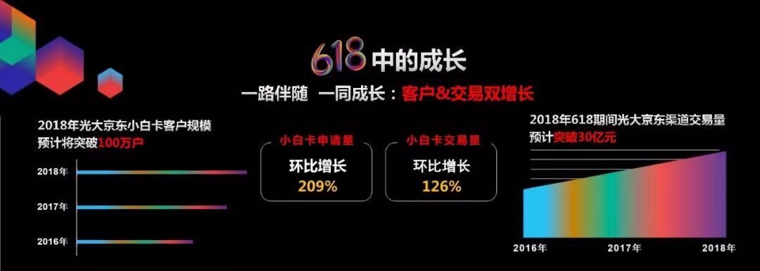 与此同时,618期间光大小白卡的申请量环比增长209%,交易量环比增长126%。2018年,光大京东小白卡客户规模预计将突破100万户。