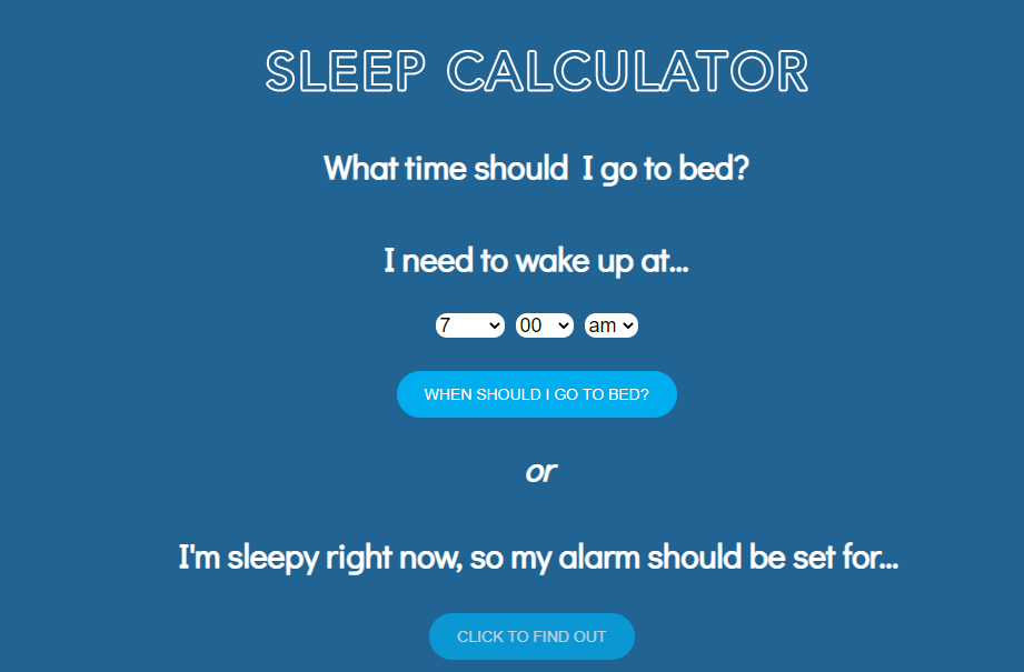The clever sleep calculator works out what time you need to go to bed just by the time you need to get up combined with information on the body's natural sleep pattern - which works in 90 minute cycles.