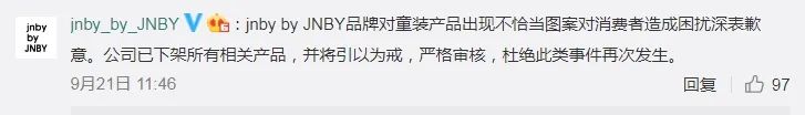 An online customer service from "jnby by JNBY," a sub-brand of JNBY said the company was aware of the situation and has removed related products from their website.