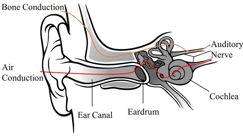 However, when you speak, the sound from your voice reaches the inner ear in a different way. While some of the sound is transmitted through air conduction, much of the sound is internally conducted directly through your skull bones. When you hear your own voice when you speak, it's due to a blend of both external and internal conduction, and internal bone conduction appears to boost the lower frequencies.