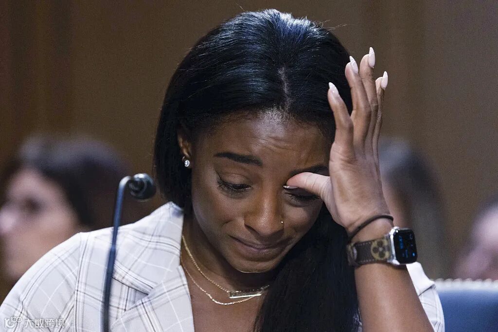 在发言过程中,拜尔斯哭诉自己的经历并抨击了美国体育系统。