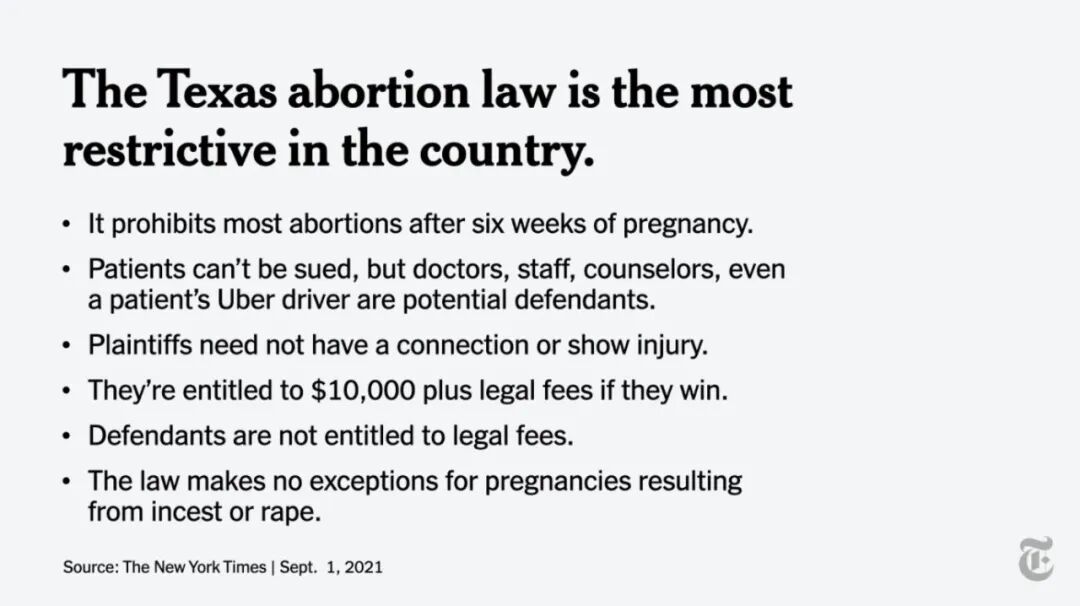 当地时间2021年9月1日,美国得克萨斯州,妇女举行示威活动,抗议得克萨斯州的堕胎法案。(图:东方IC)
