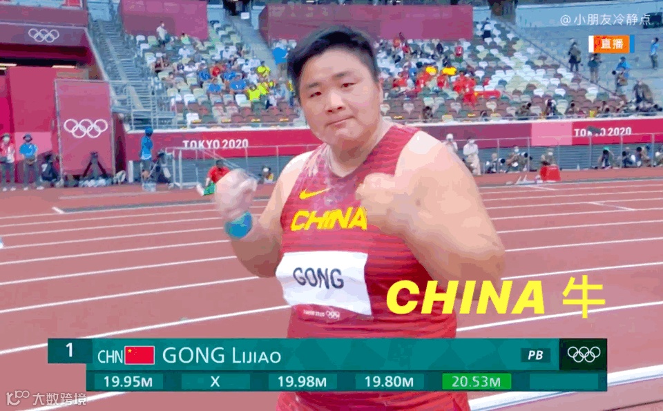 当她第五投投出20米53后,巩立姣大声喊出“CHINA牛”!