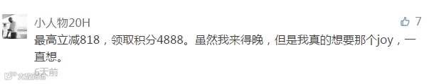 答案是最高可立减818元;享受4888积分。恭喜这位随机抽取的真爱粉: