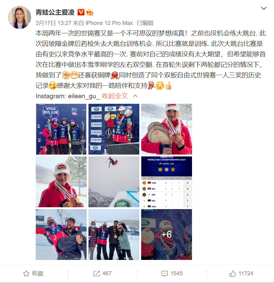 图源:@青蛙公主爱凌 官微