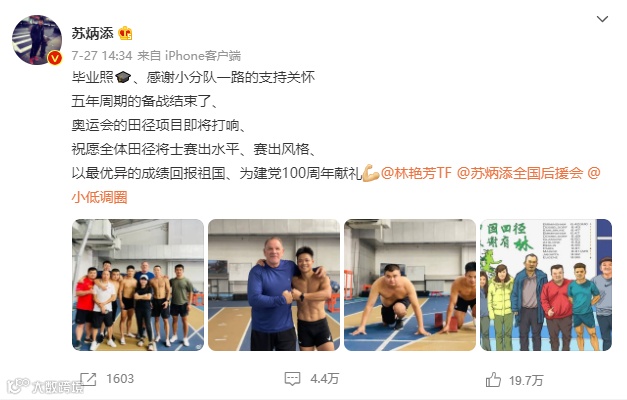 不过,苏炳添最新的一条微博,已经晒出了毕业照。