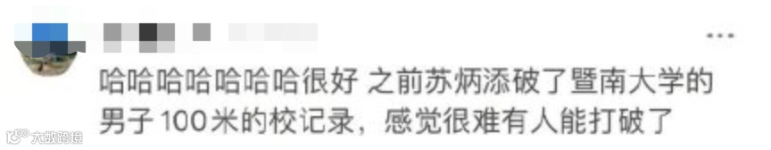 有网友感叹:这可能是跑得最快的教授了。也有网友感叹:暨南大学的男子100米校纪录,可能很难有人能打破了。