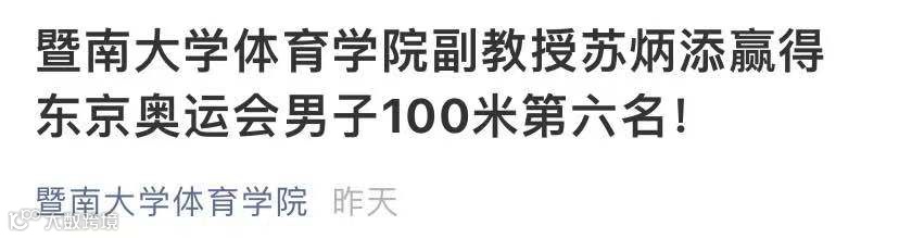 在苏炳添以9秒83的成绩晋级东京奥运会田径男子100米决赛后,@暨南大学发来贺电:苏炳添,好样的!