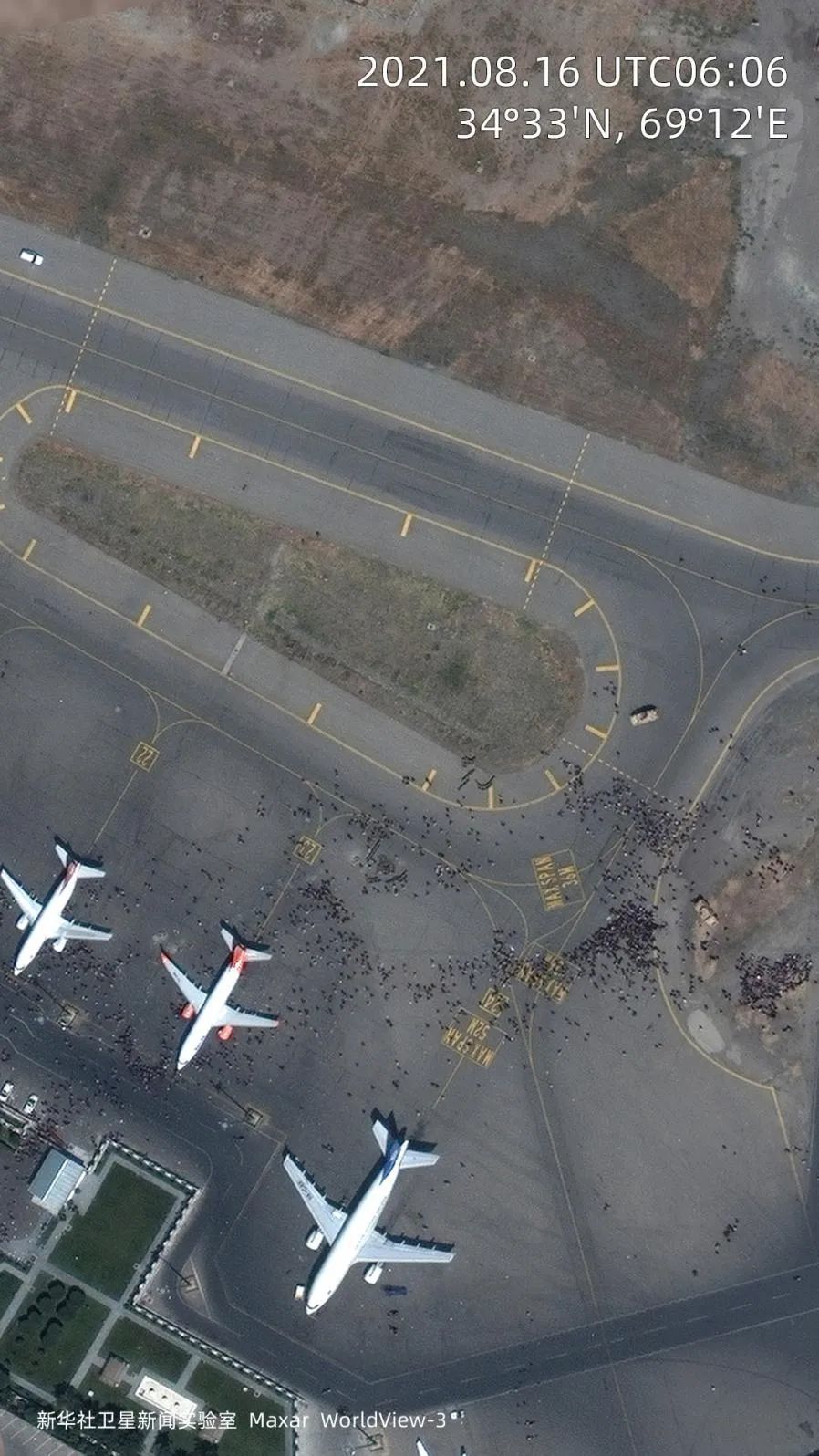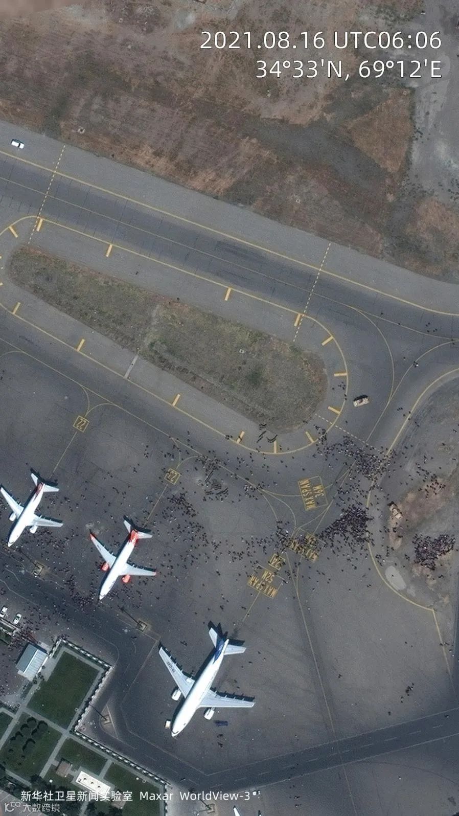 8月16日,商业卫星清晰记录下喀布尔国际机场与街头的混乱景象。