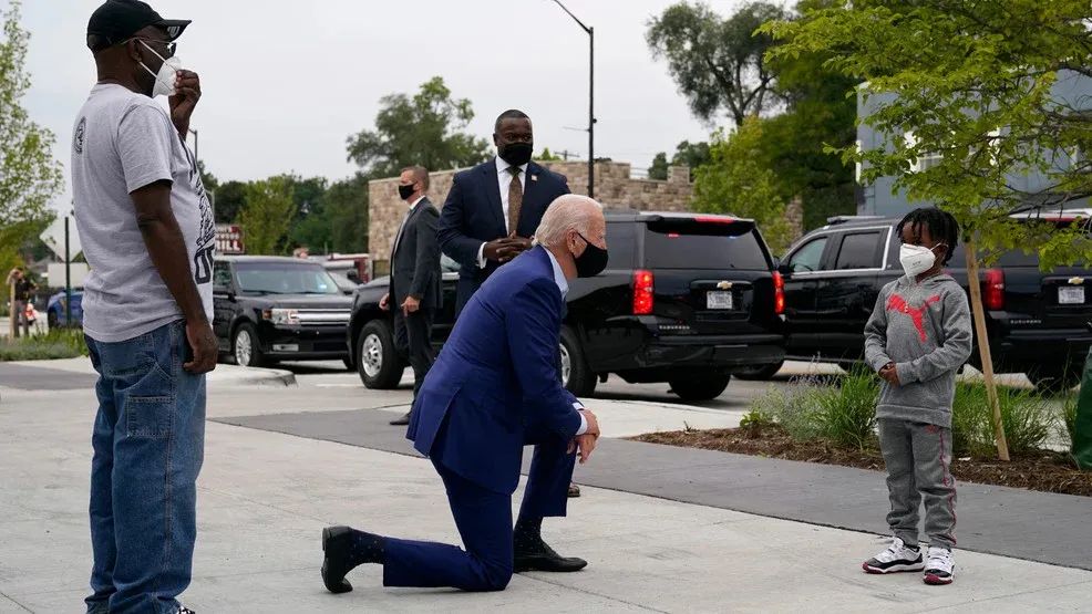 Biden's kneeling might have several reasons: to impress people with an image of being close to the people or to win the support of ethnic minorities or to boost his approval ratings. His kneeling might also aim to show his flexibility and good health as his seniority has been a public concern since the election campaign.