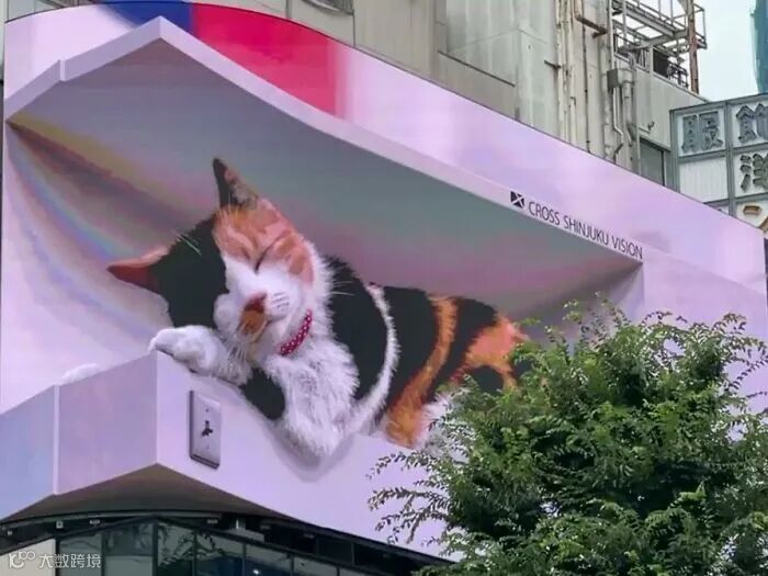 最近,日本东京的广告牌上出现了一只极其逼真的3D猫咪,关于它的视频在推特上迅速传播。