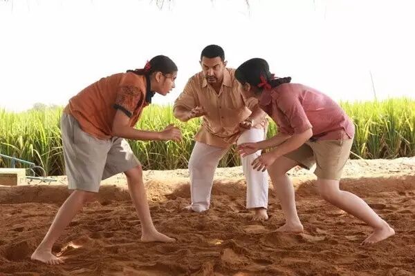 这位印度父亲开始残酷的训练:在传统的印度农村日常生活里,女孩子们都穿长袍,从没穿过上衣短裤的两个女儿,穿着改装过的男士短裤在村里田间慢跑;把两个女儿的长发剪成了比男生还短的寸头;不能睡懒觉也不能吃油炸辛辣食物;不让偷偷跑出去玩。