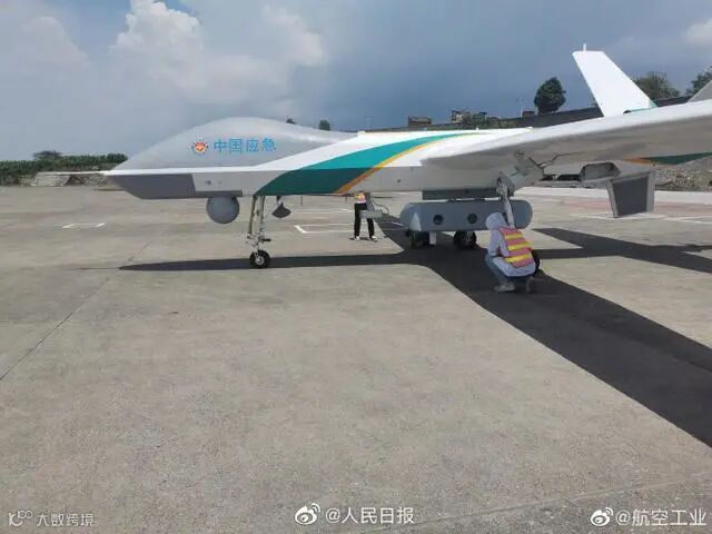 A China-developed Wing Loong-2H unmanned aerial vehicle (UAV) took a 4.5-hour flight to Mihe township in Gongyi city, one of the most seriously ravaged regions in Henan province, the Ministry of Emergency Management said.
