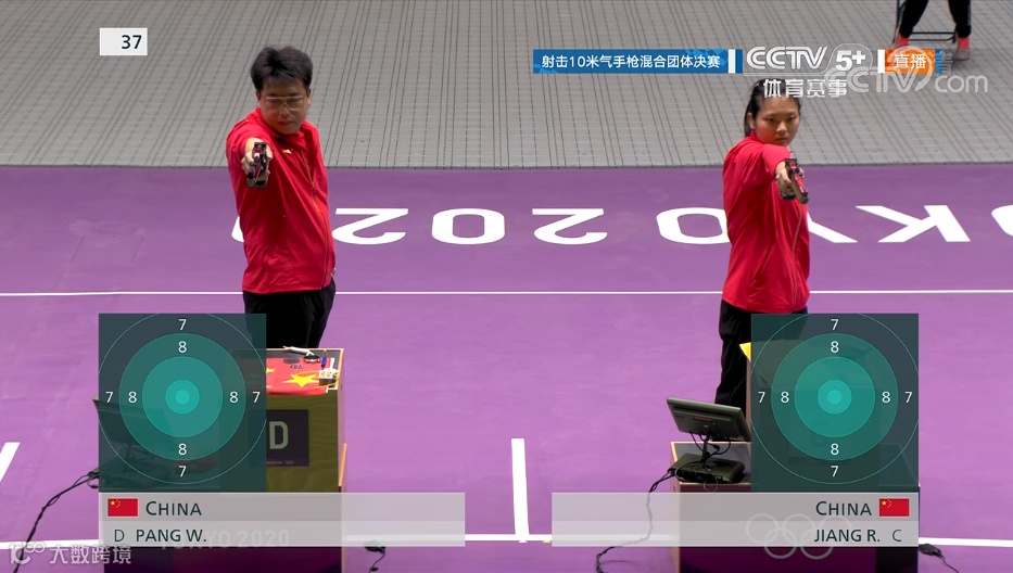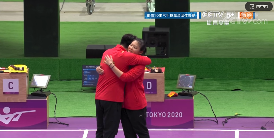这一老一少的组合,在本届东京奥运会的十米气手枪混合团体的比赛中,可以说是发挥稳定。