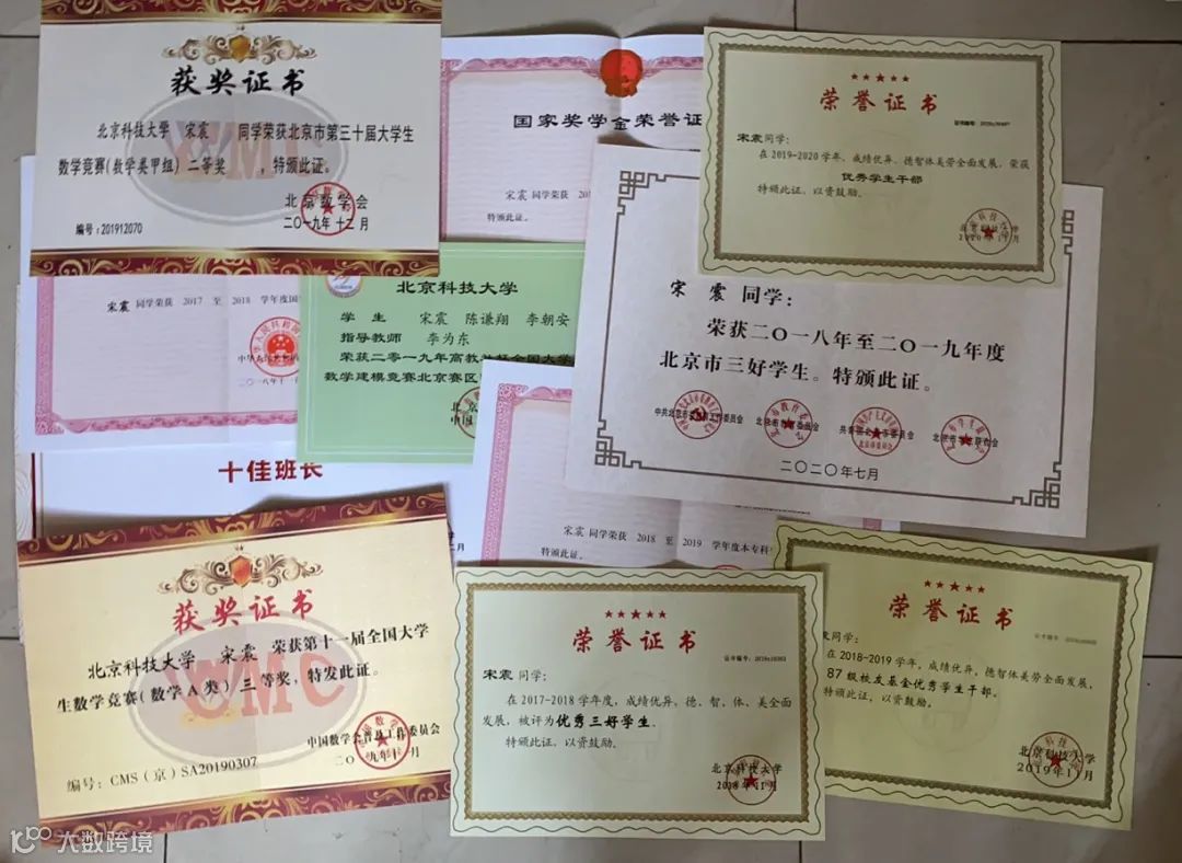 大一上学年结束,宋震的各门专业课均高于90分,1/3的课程超过95分。慢慢地,宋震开始喜欢上数学。