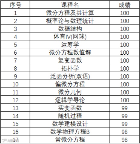 近日,一份数学相关专业的学生成绩单引发关注:12门课100分,还有多门99分、98分!