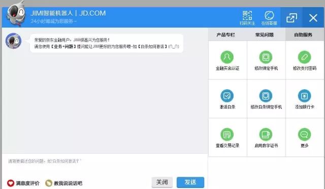 面对真正敏感的、专业的问题,譬如白条被盗用,JIMI就会引导客户联系人工客服,进行资产核查和找回,及时止损。
