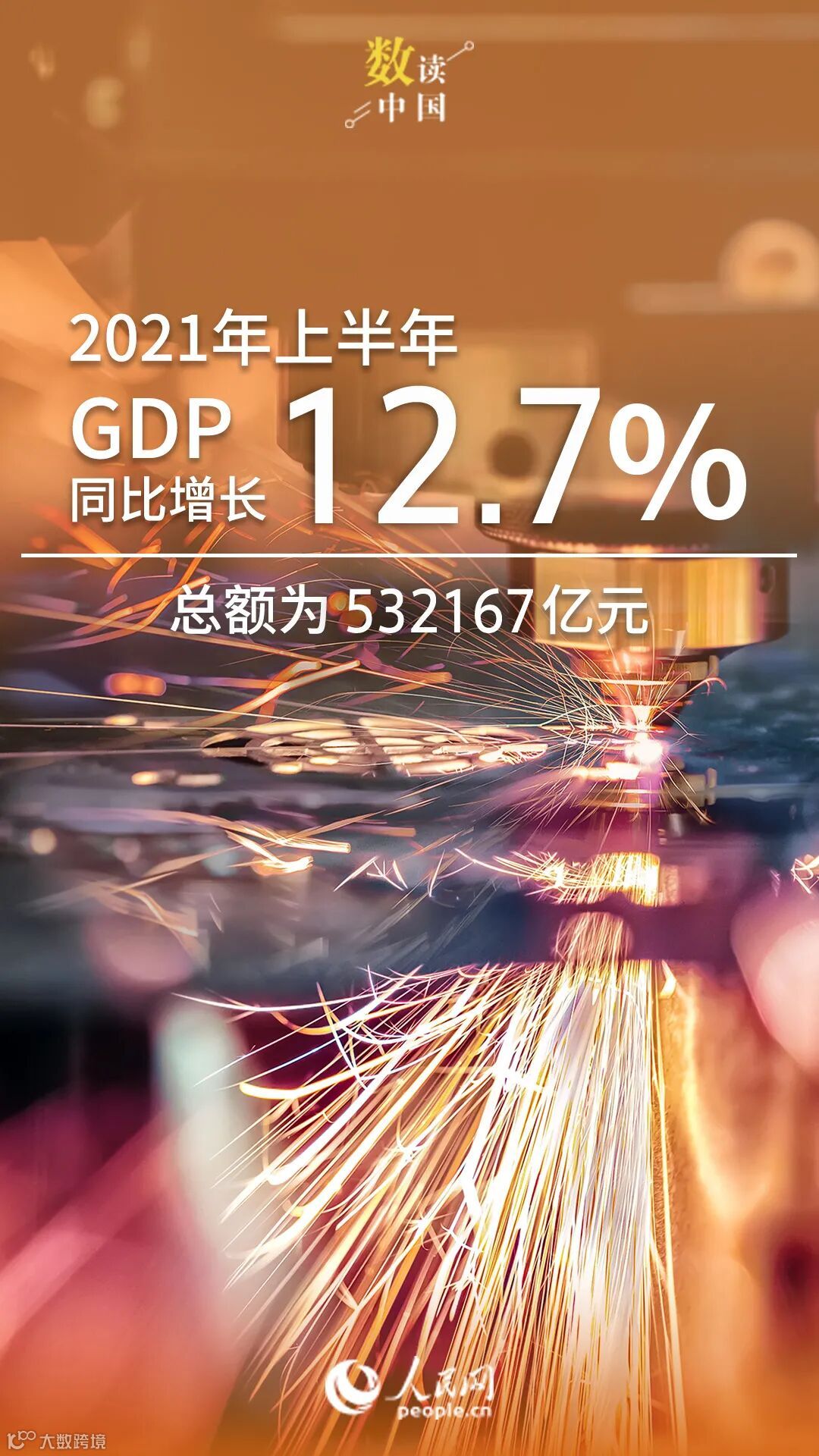 China's gross domestic product (GDP) expanded 12.7 percent year on year in the first half of 2021 as recovery continues to firm, data from the National Bureau of Statistics (NBS) showed Thursday.