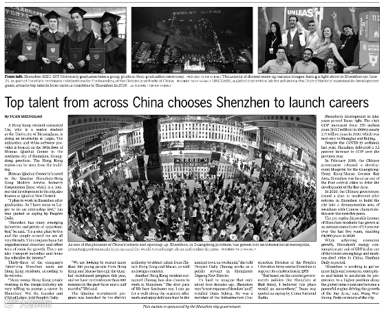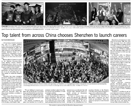 值此中国共产党成立100周年之际,《中国日报》旗舰版于6月28日-30日,连续三天刊发特刊文章,聚焦深圳改革开放、文化建设与科技创新等领域的发展成就,献礼建党百年。