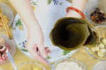 下面这几位吃的应该是甜的,作品里全是蜜粽。