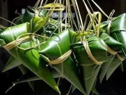 茭粽叶包蒸米饭,野山茶点石菖蒲。