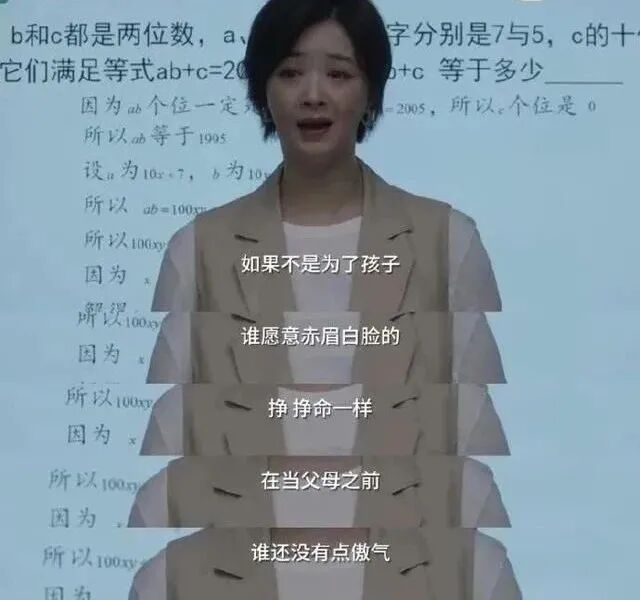 剧中令人印象深刻的一幕大概要数田雨岚为了让儿子子悠上择数的奥数金牌班费劲心力,终于得到了这个机会,她却仍然需要向奥数老师当众道歉。