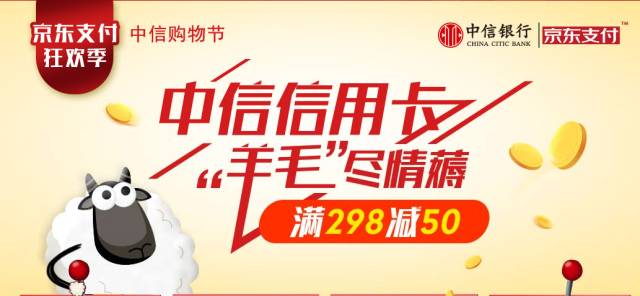 活动期间,每周三、六,每个活动日11:11开始,在京东商城使用京东支付-中信银行信用卡支付,单笔满298元立减50元,每天1200个名额。