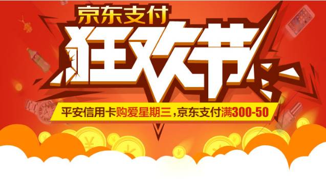 每周三15点开始,在京东商城使用京东支付-平安银行信用卡支付,单笔满300元立减50元,每天3000个名额。