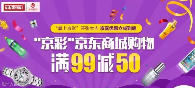 每个活动日10:00开始,在北京银行信用卡“掌上京彩”官方APP中的京彩京东商城购买实物类商品(全球购除外),使用北京银行信用卡绑定京东支付完成支付的,单笔满99元享随机立减,最高减99元,每天600个名额。
