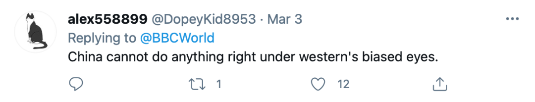 网友alex558899: 在西方国家带有偏见的眼光下,中国做什么都是错的。