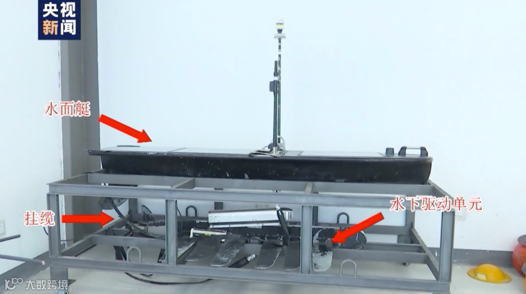 Tang Jiansheng, an expert on underwater acoustic engineering, told the media that the top looks like a boat but has a part on the bottom which is made up of six wings connected by an umbilical cord. It has a propeller behind it and, judging from its shape, it is actually a wave glider.