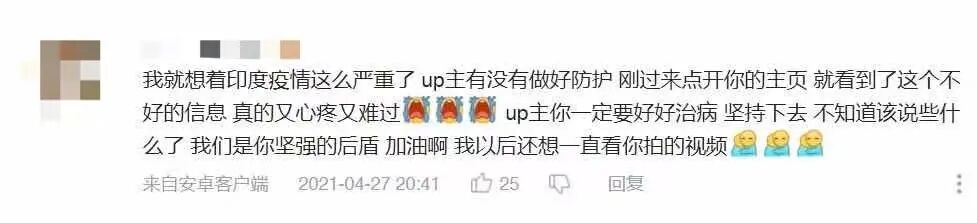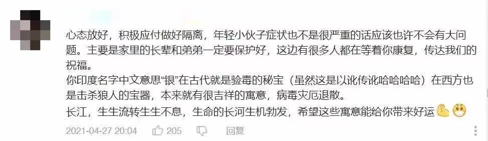 一名感染新冠的印度小伙被中国网友的祝福淹没。该小伙少年一名视频博主,他在哔哩哔哩上分享了自己的遭遇。