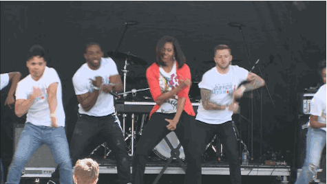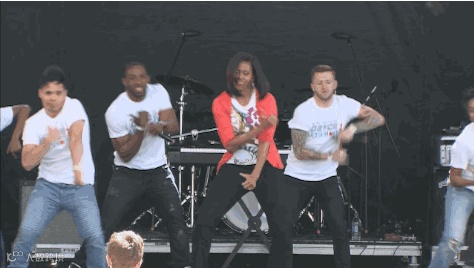 奥巴马当上了美国史上第一个黑人总统,她成了史上第一个黑人第一夫人,性格很放得开,能文能武有才艺,支持率比总统还高。要求全国孩子都要动起来,let's move!自己上电视上台现场跳舞,很接地气↓↓