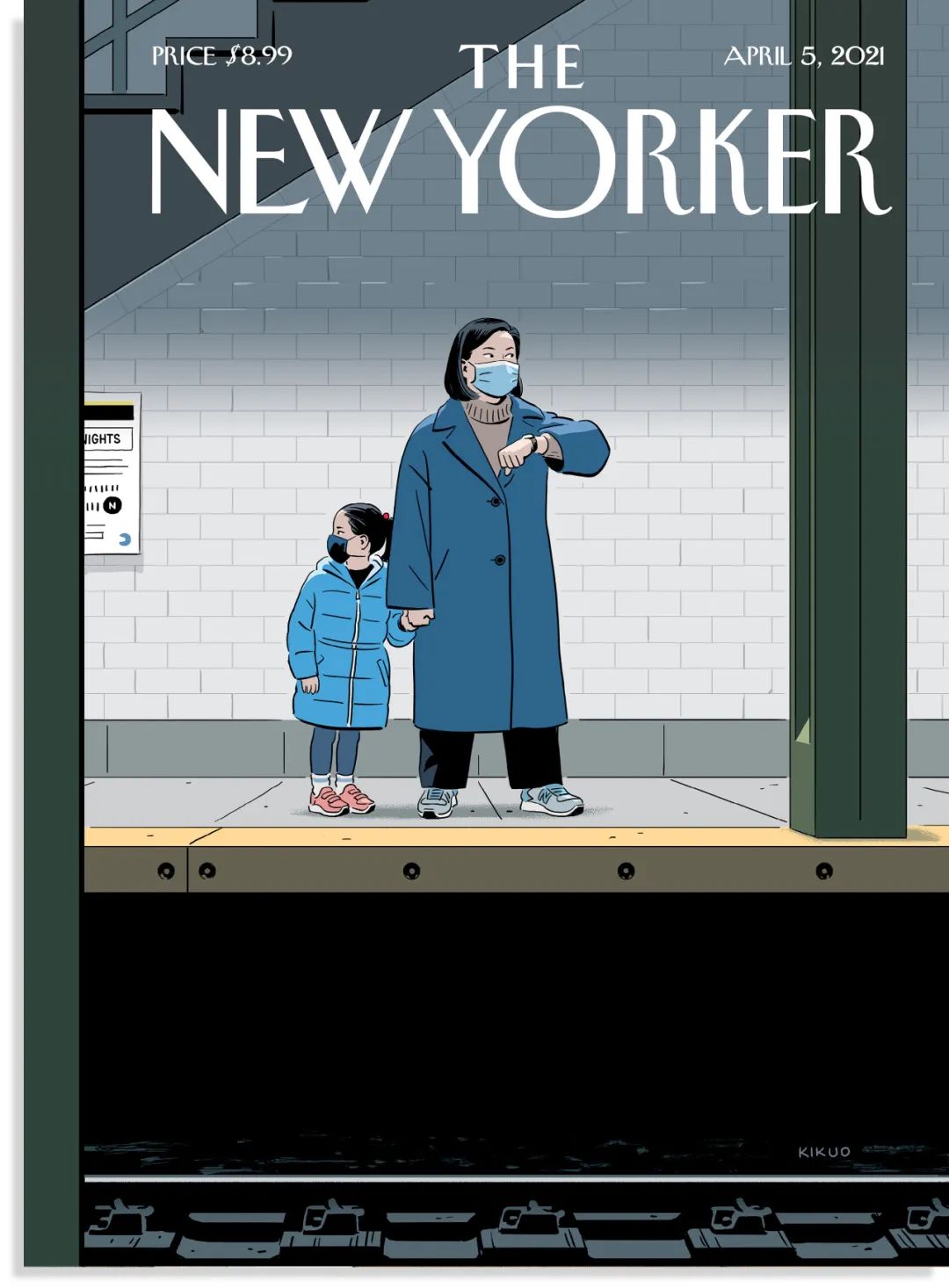 在回答有关美国针对亚裔的仇恨犯罪问题时,赵立坚表示,这个问题使他想起《纽约客》最新一期杂志的封面: