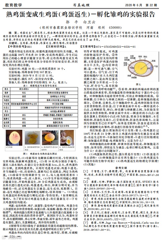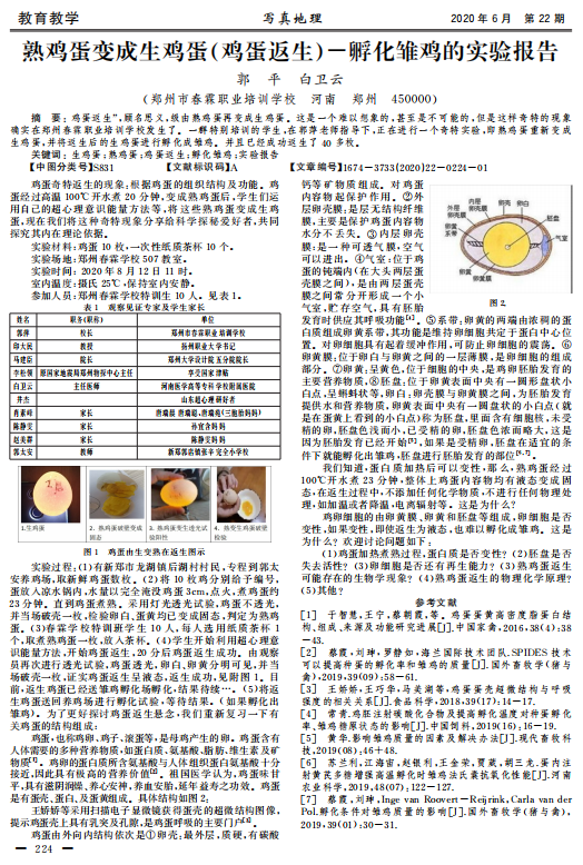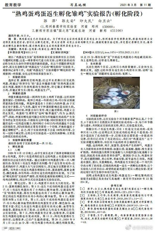 另外一篇题为《“熟鸡蛋鸡蛋返生孵化雏鸡”实验报告(孵化阶段)》的论文称:
