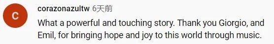 这个故事感人至深。谢谢你们,用音乐给这个世界带来希望和快乐。
