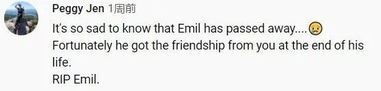 得知Emil去世了,我好难过……幸运的是,在生命快要落幕的时候,他从你那里得到了这段友谊。请安息Emil。