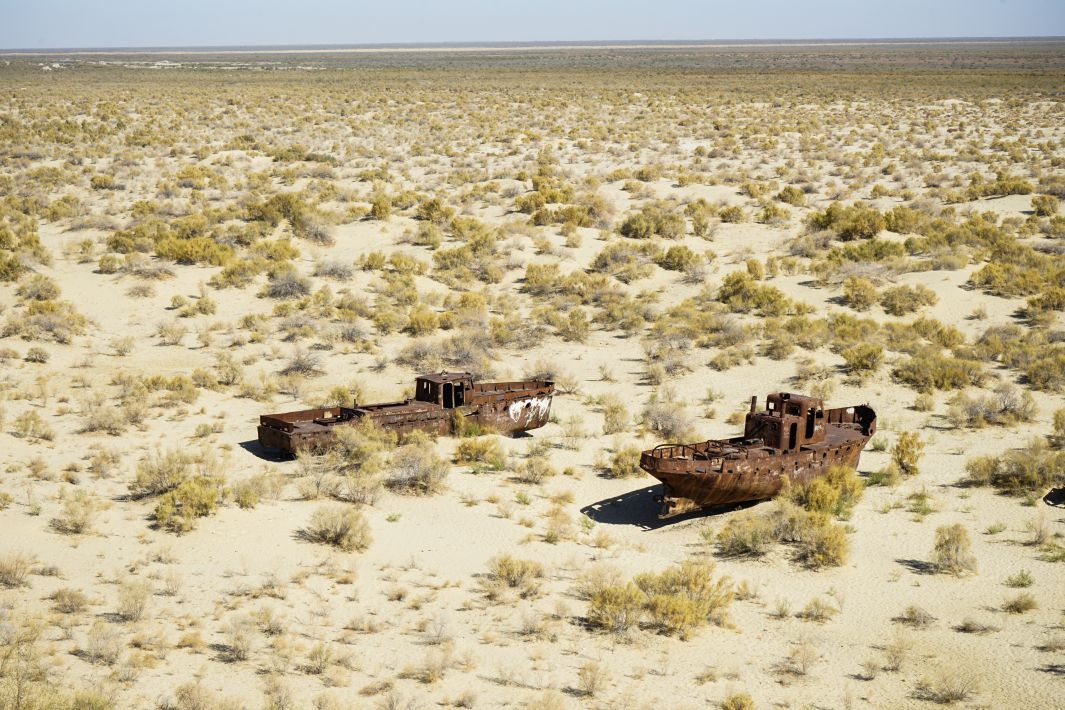 曾经的渔民之乡穆伊纳克,只剩下干涸的海床和搁浅的渔船
