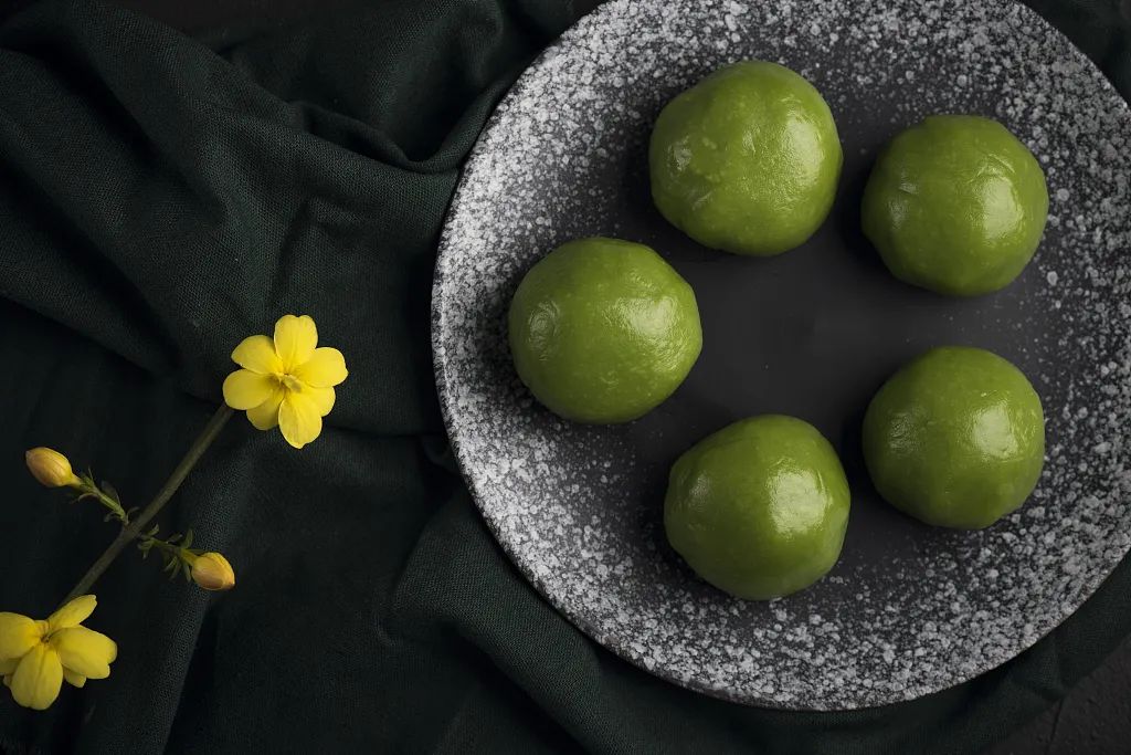 这一时令美味通常用糯米混合捣碎的艾草制成,艾草是一种野生草药,据称有驱蚊虫防瘟疫之功效。