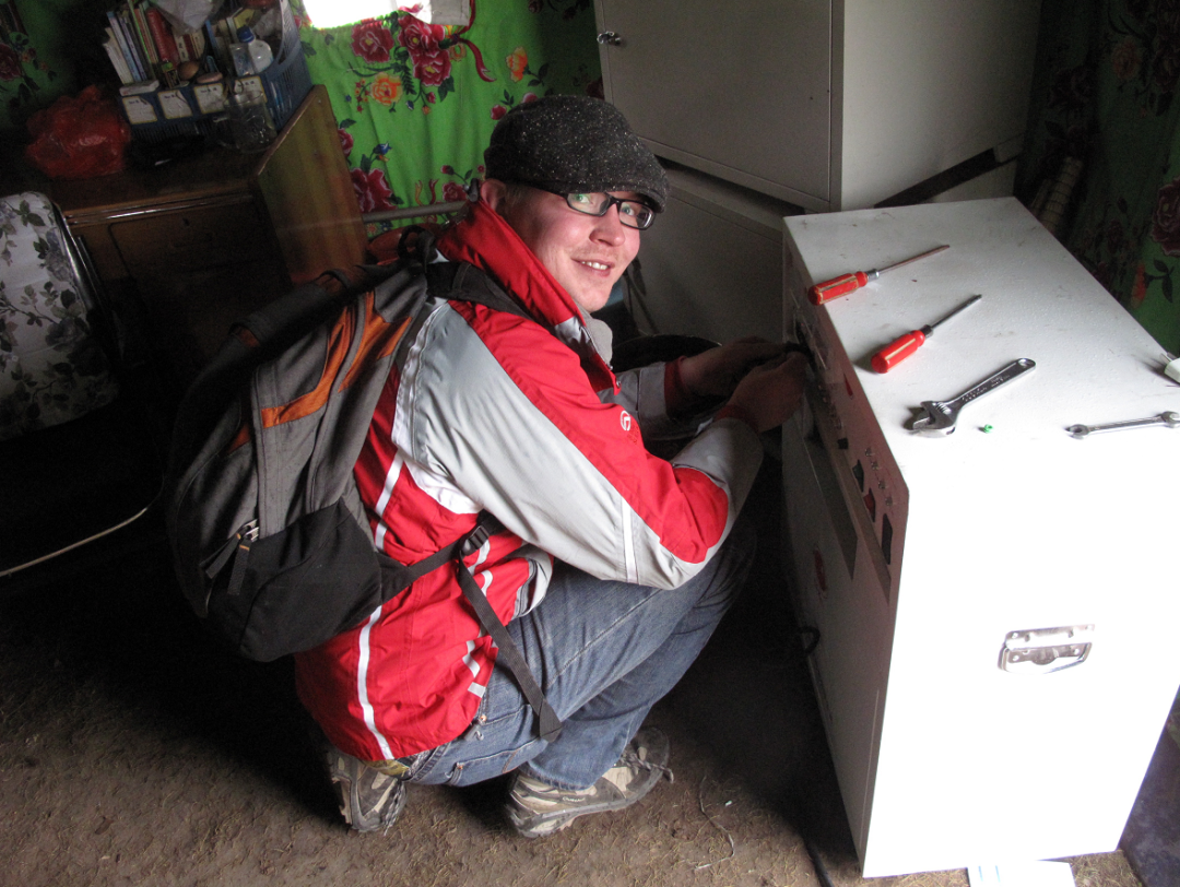 2011年7月,经历飞机、火车、崎岖的高原山路,艾瑞克来到了青海省曲麻莱县叶格乡,在那里,他看到了将近80个孩子挤在7顶帐篷里。在那里,艾瑞克和当地的老师一起装好了太阳能板。