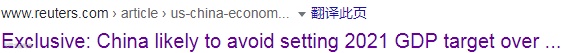 路透社独家:中国可能会避免设立2021年GDP增长目标
