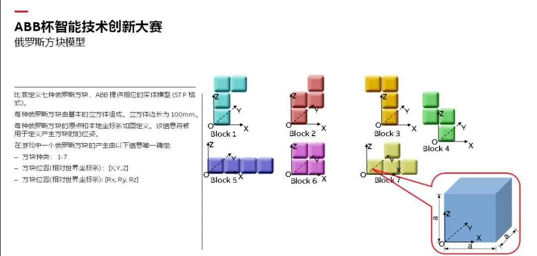 软件是机器人的大脑,算法(algorithm)是机器人的灵魂。挑战组的比赛将机器人现实场景中的码垛应用对应于经典的俄罗斯方块游戏(Tetris),选手们将基于RobotStudio®软件进行俄罗斯方块游戏的比拼。