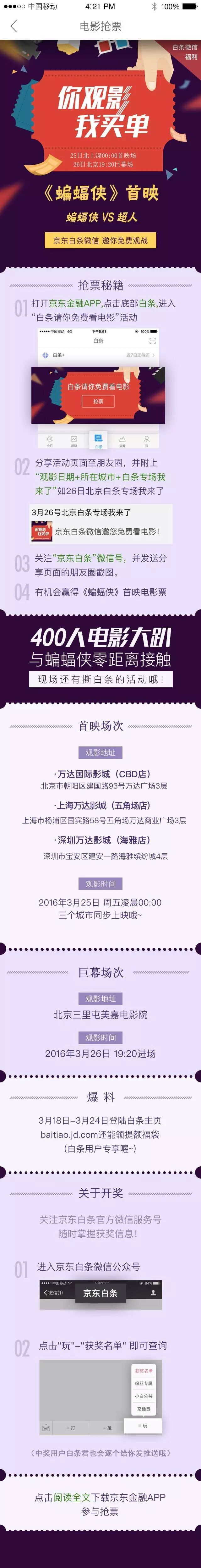 导读:京东白条微信,邀请你免费看电影。