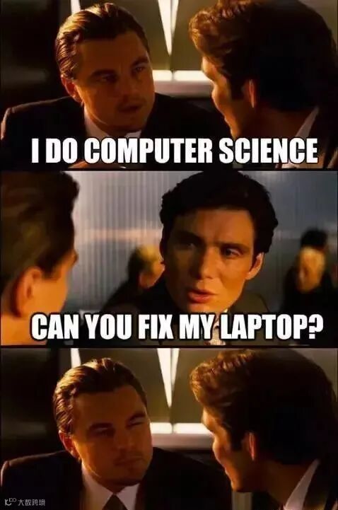 其实,程序员(programmer)并不是修电脑的专家,只是因为大众的刻板印象(stereotype)而被迫修理了很多不该他们修的电脑。