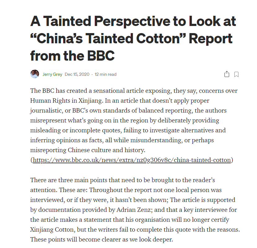 The BBC has created a sensational article exposing, they say, concerns over Human Rights in Xinjiang. In an article that doesn’t apply proper journalistic, or BBC’s own standards of balanced reporting, the authors misrepresent what’s going on in the region by deliberately providing misleading or incomplete quotes…