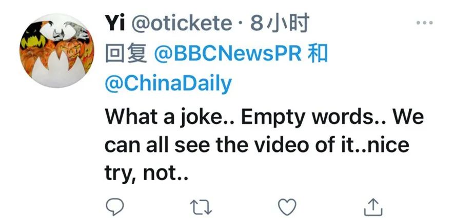 中国日报将这则视频通过官方推特账号发布,向更多海外网友传递真相,结果,BBC跳出来回应了……