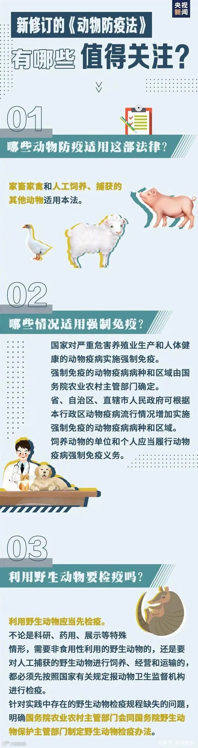 新《动物防疫法》规定,任何饲养犬只的个人或单位必须确保该动物定期接种疫苗,并登记接种证书。此外,携带犬只出户,应当佩戴犬牌并系带犬绳,以防犬只伤人或传播疫病。