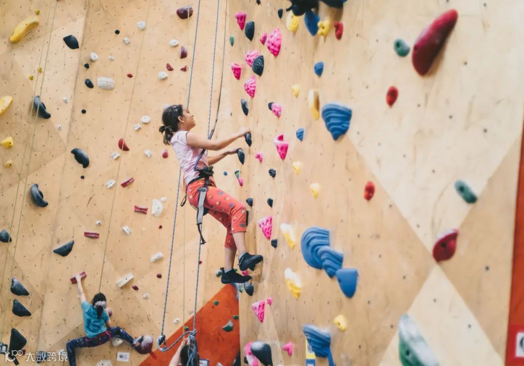 参加攀岩活动的人在自然岩石或者人工岩墙上上下爬行或者横着爬行。