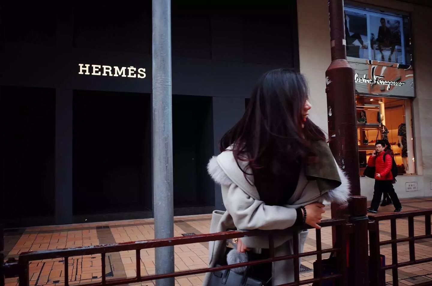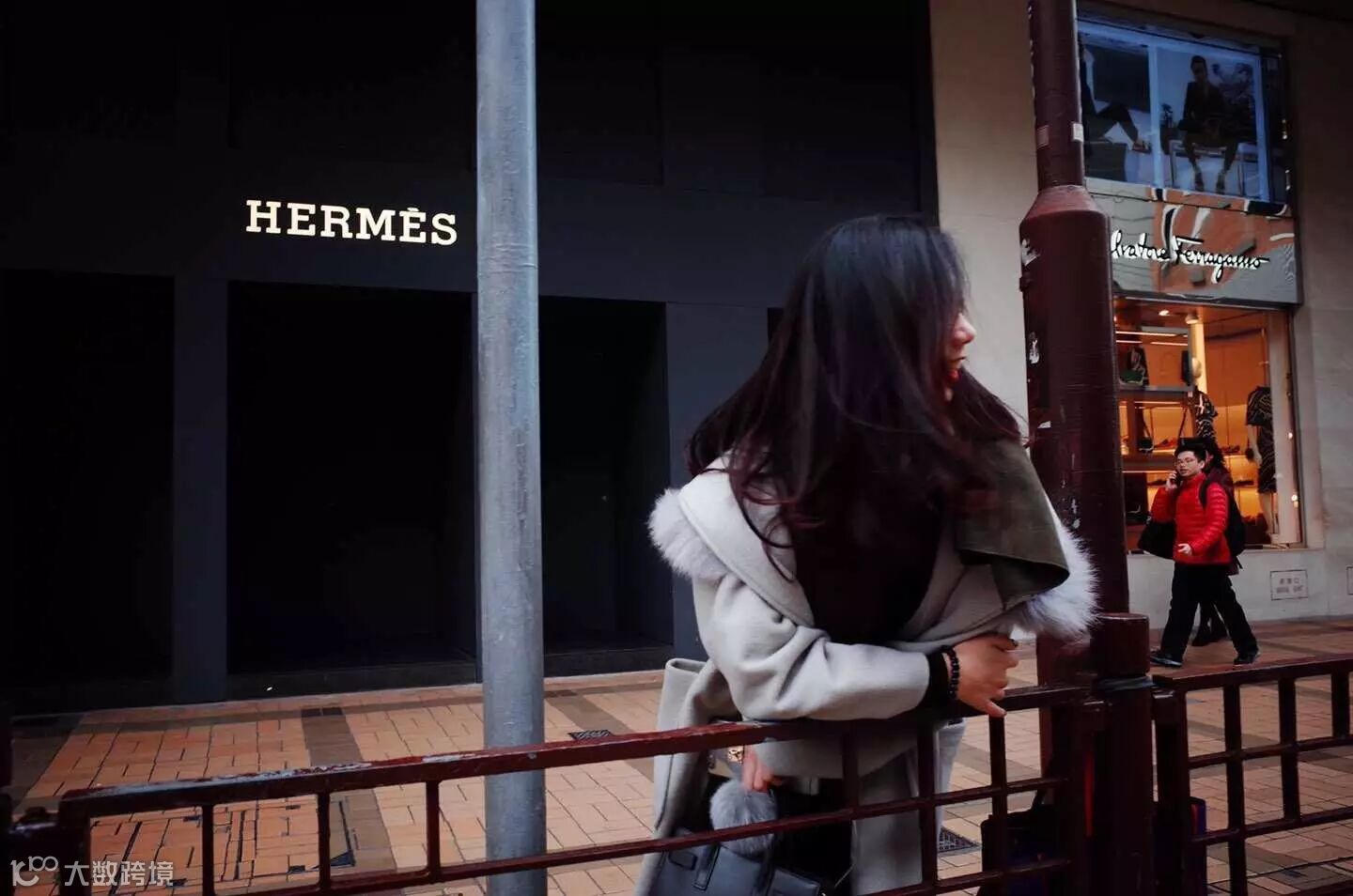 被热闹的名牌店包围